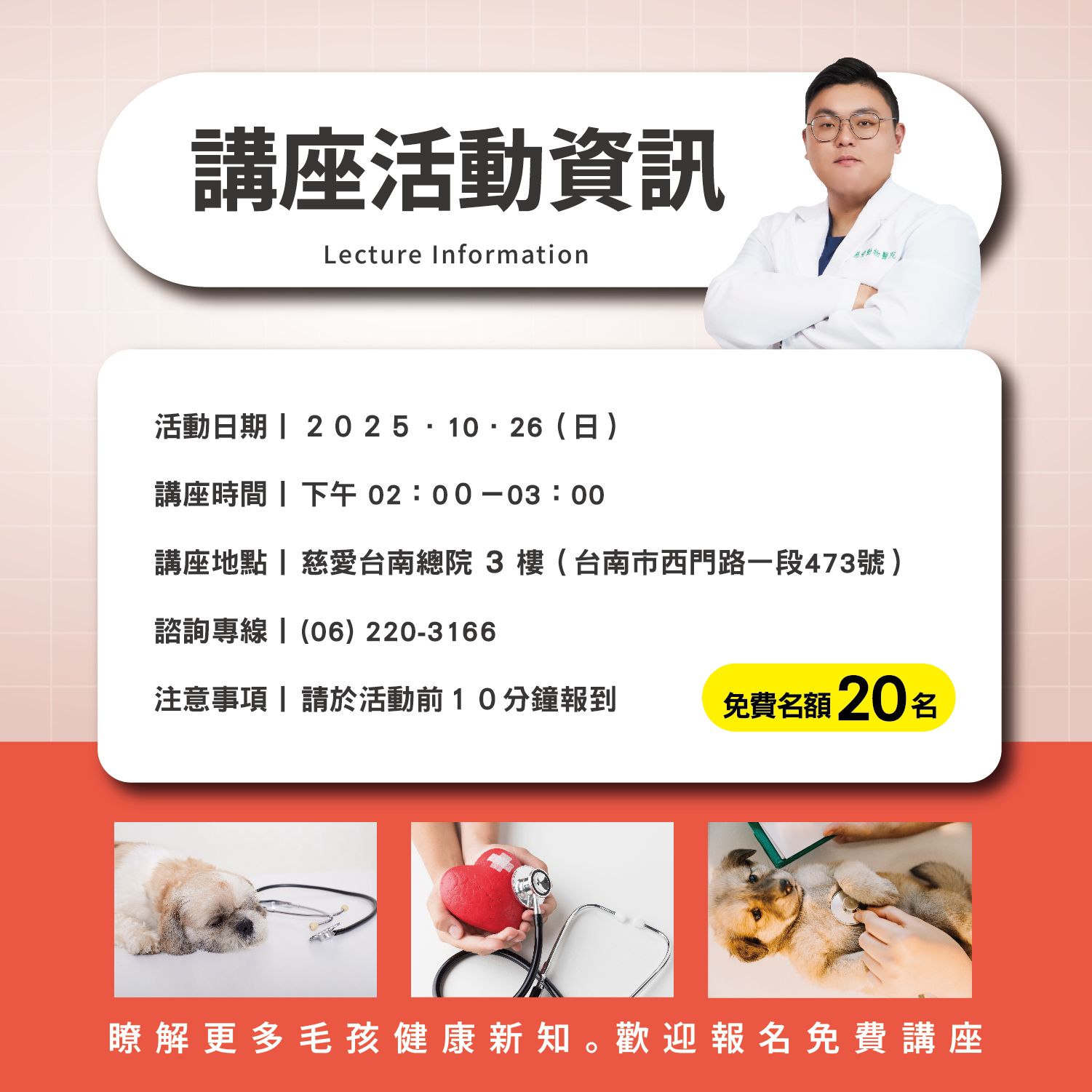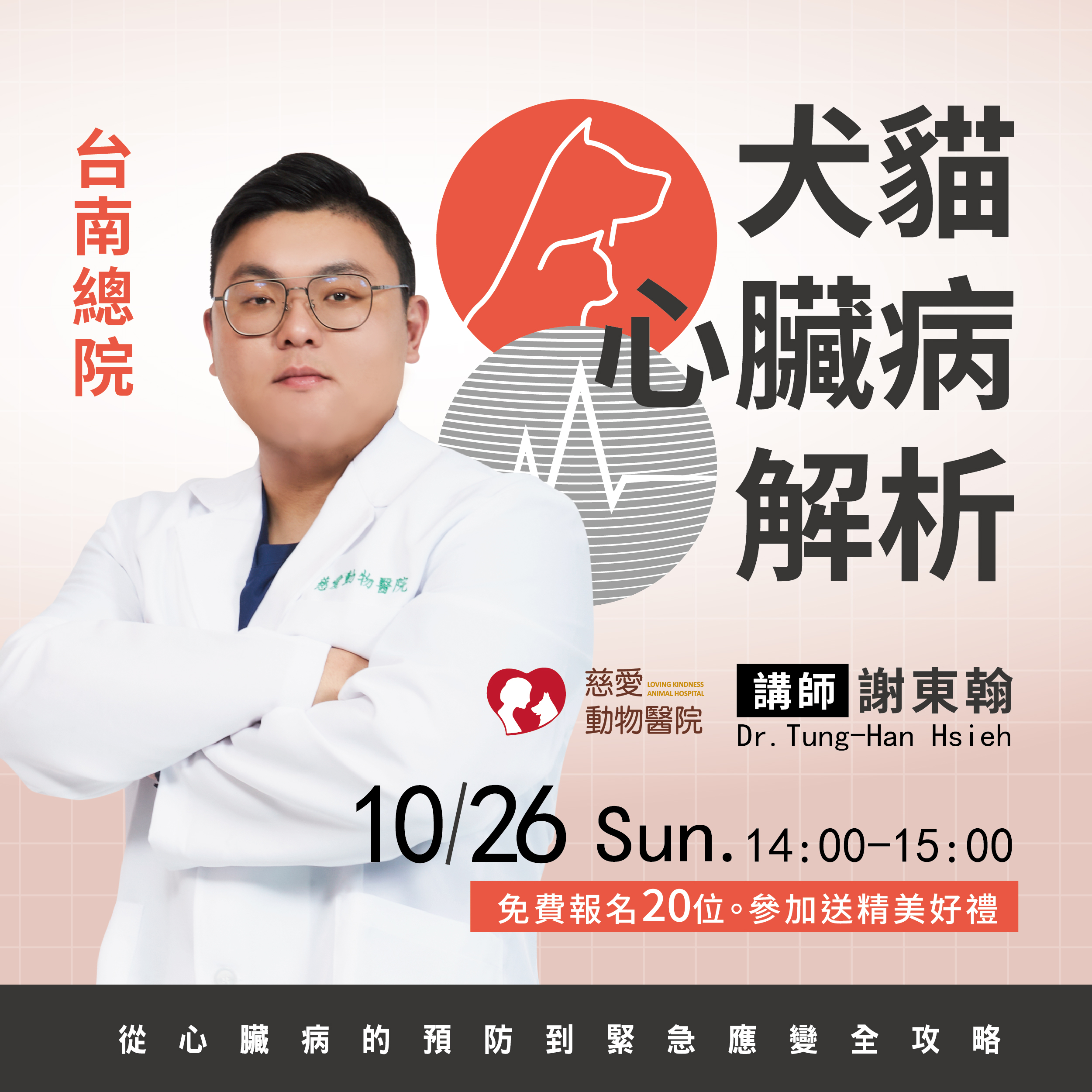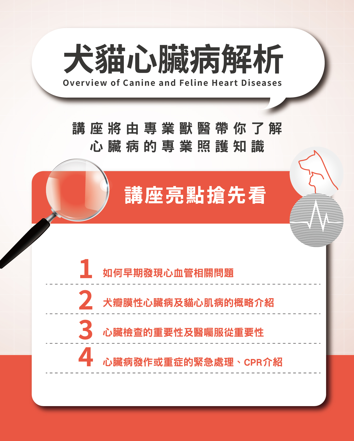 本次講座將由專業獸醫師帶您掌握 心臟病的預防到緊急應變全攻略,