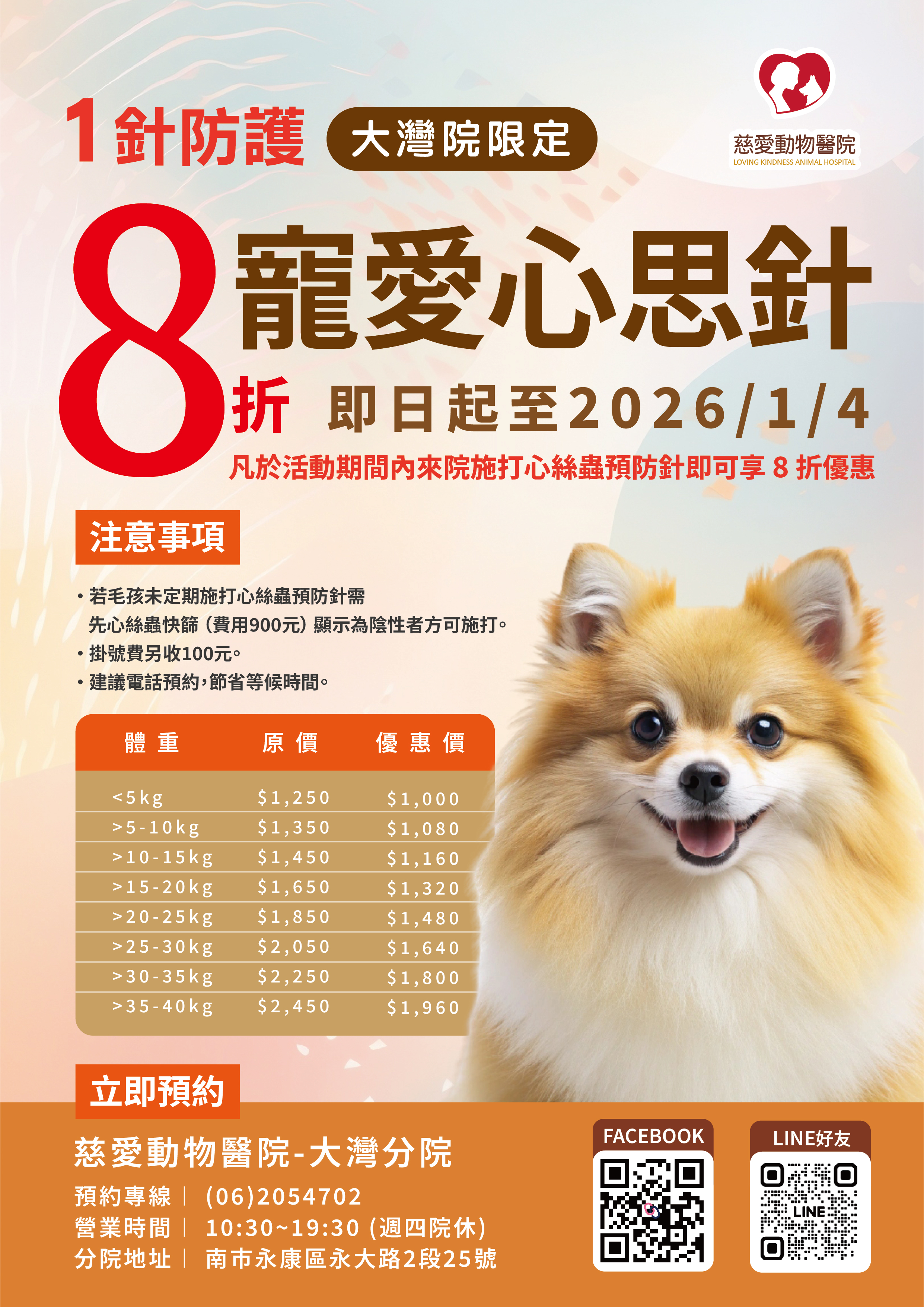 凡於活動期間到【慈愛動物醫院-大灣分院】