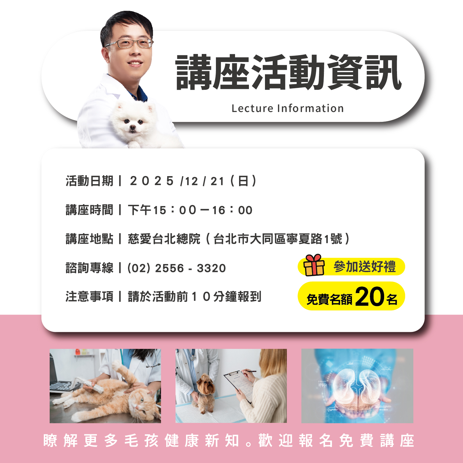 本次由【慈愛動物醫院-台北總院】主辦,邀請 曼哈頓 葉肇晟 獸醫師 親自授課,帶大家深入了解: